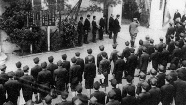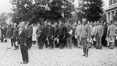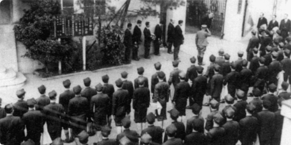 本館前で出征する医学生を見送る式典