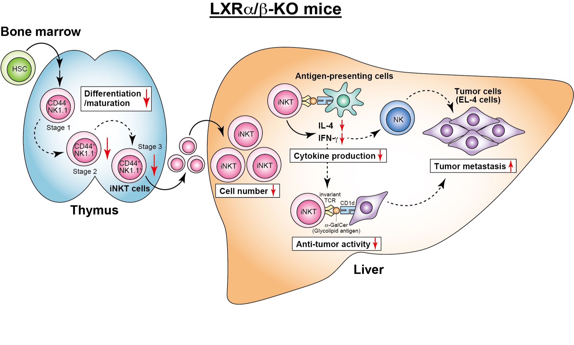 - Natural killer T cells and hepatic antitumor activity are diminished in LXR-deficient mice (Endo-Umeda et al., Sci Rep 2021).
