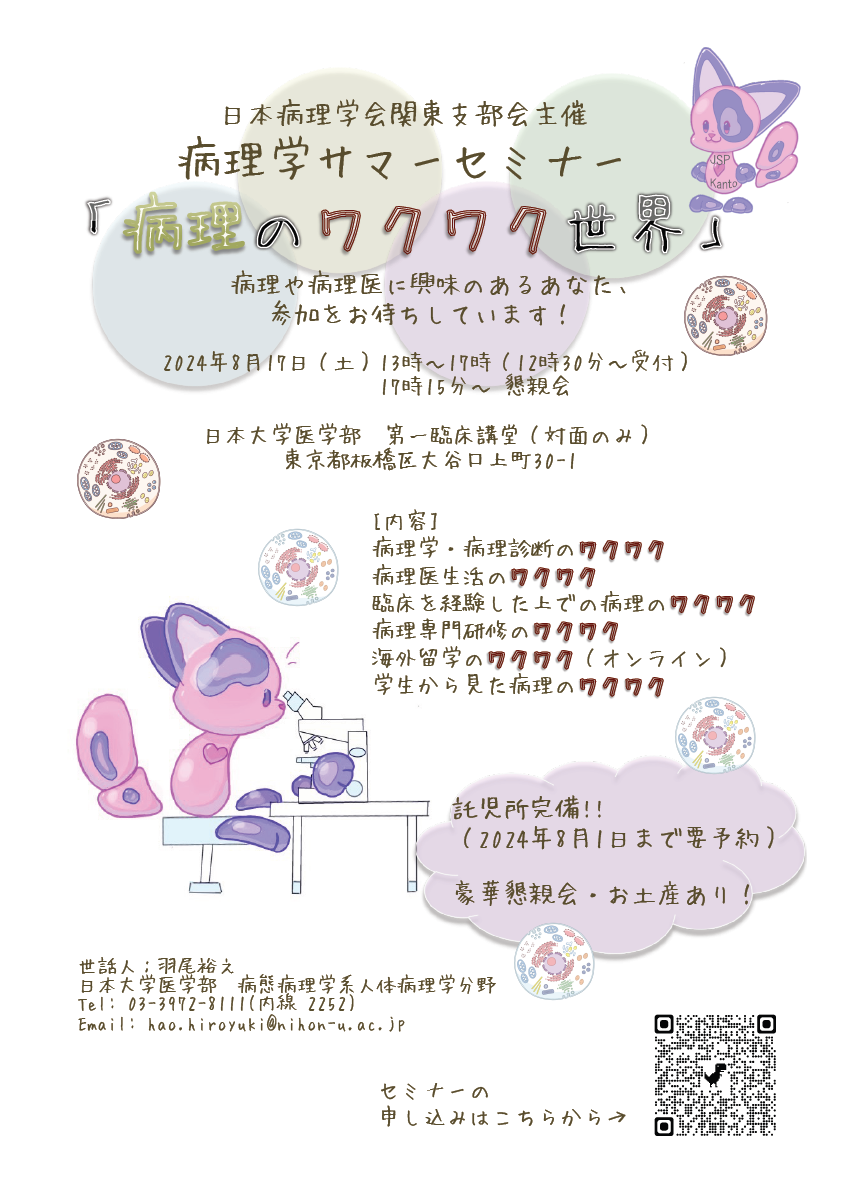 本講座の羽尾教授が世話人となって日本病理学会関東支部会主催「病理学サマーセミナー『病理のワクワク世界』」が開催されました.