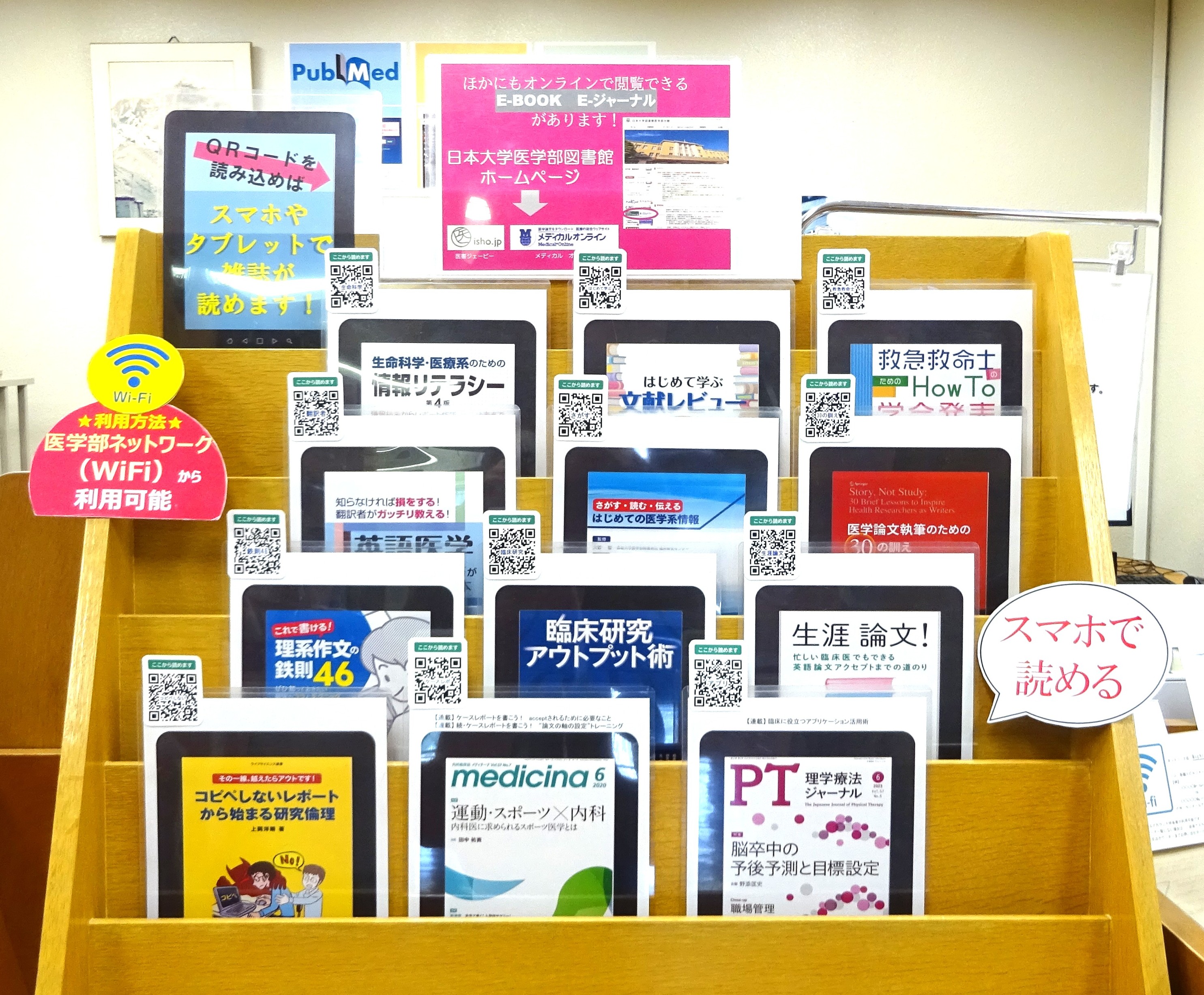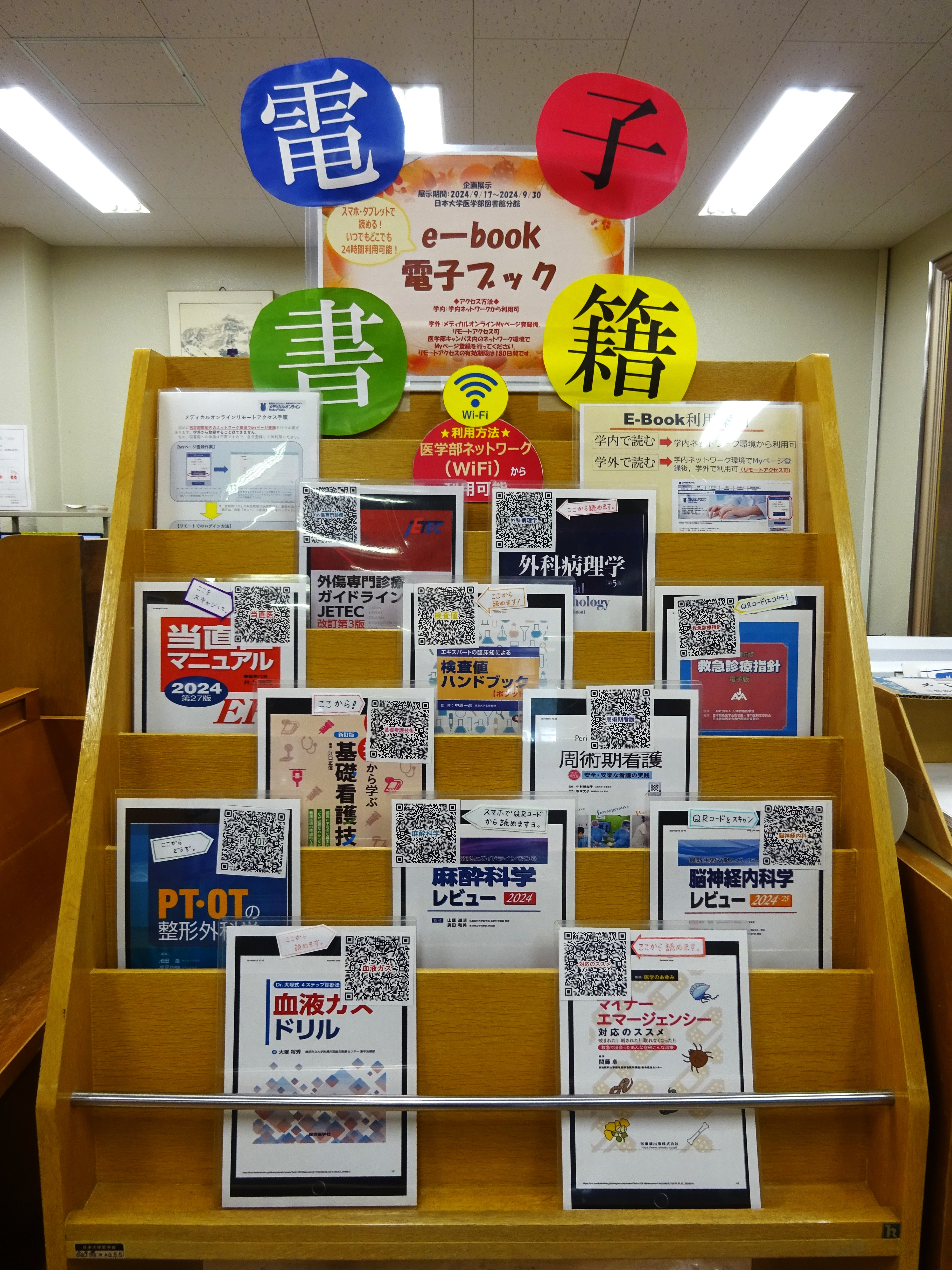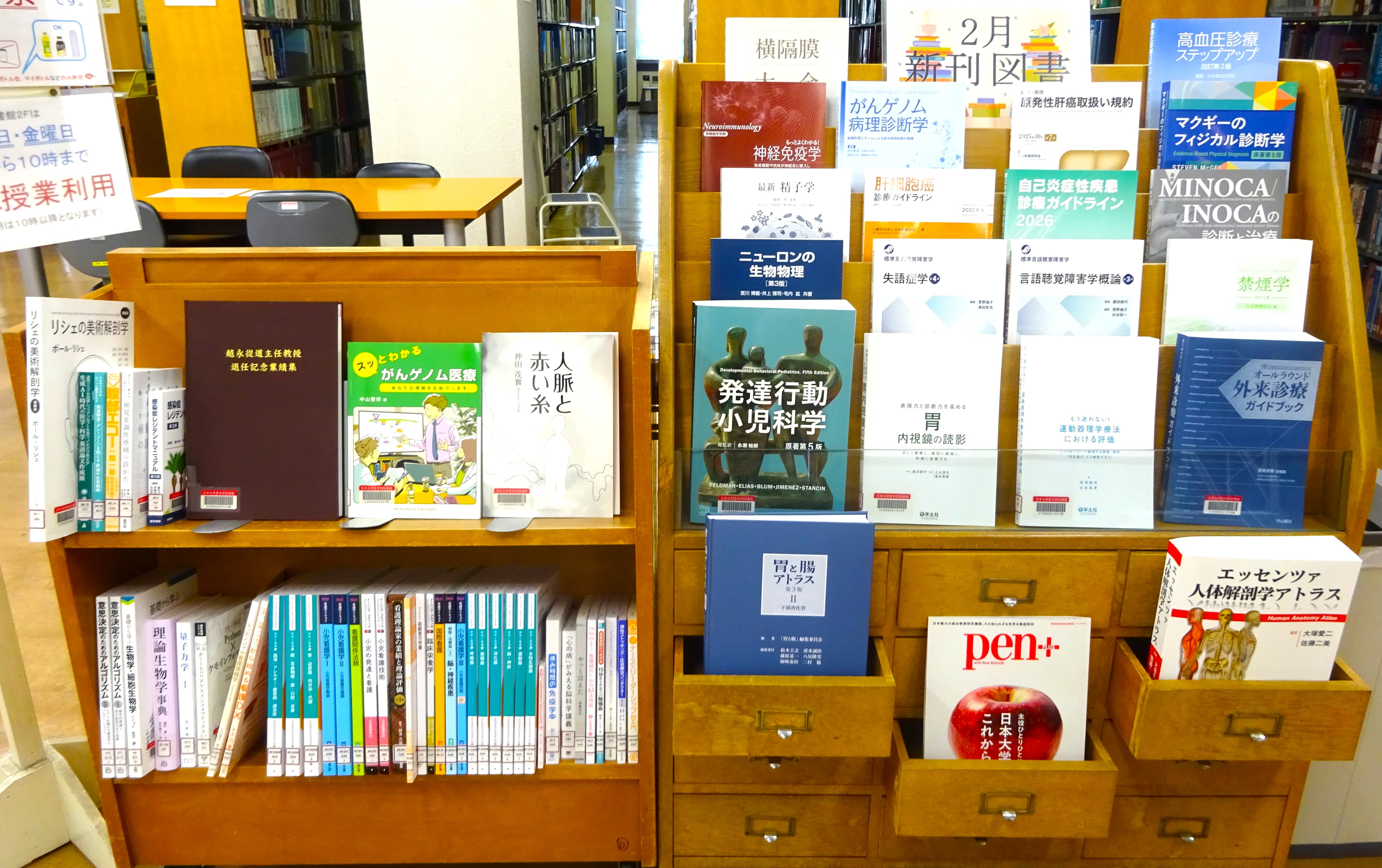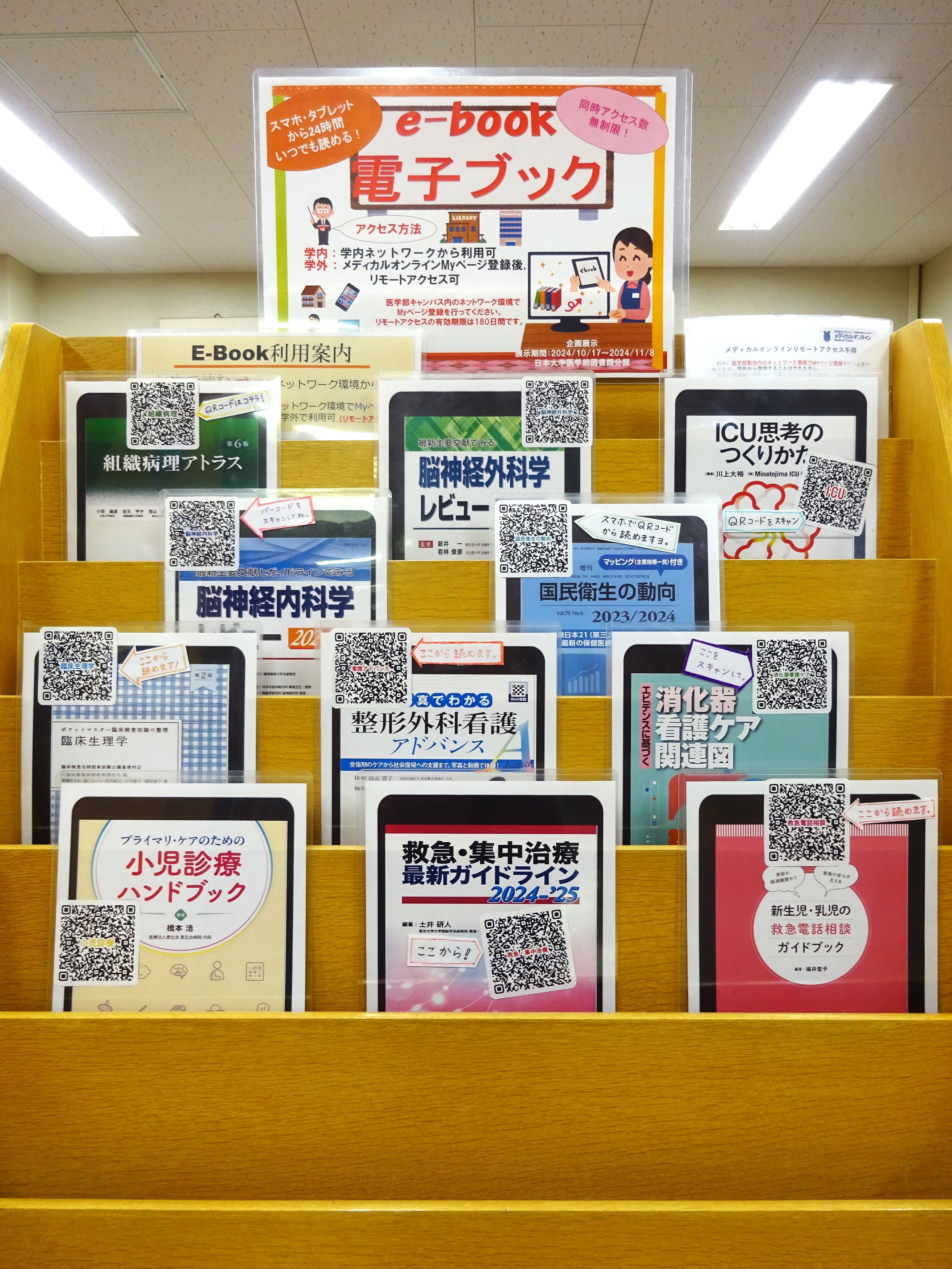 - 図書館1階で『メディカルオンライン「イーブックス」ライブラリー』の一部を
